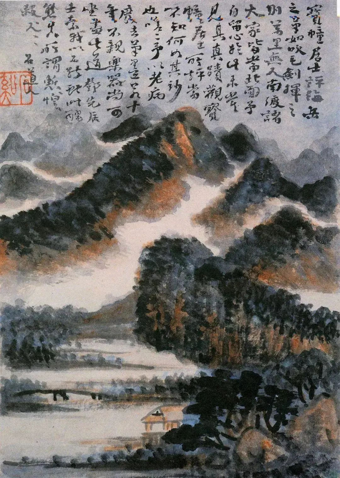 他的作品以真实山水为粉本,具有“奥境奇辟,缅邈幽深、引人入胜”的艺术境界。